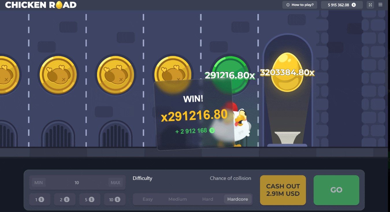 - Hardcore: من 1.63x إلى 2,542,251x — نعم، هذا الرقم حقيقي. الجولة تنتهي عادةً في خطوات قليلة