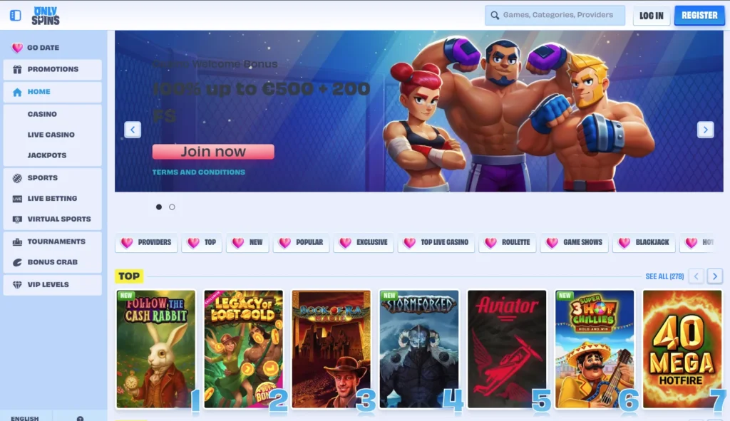 - اذهب إلى onlyspins.com وانقر “التسجيل”